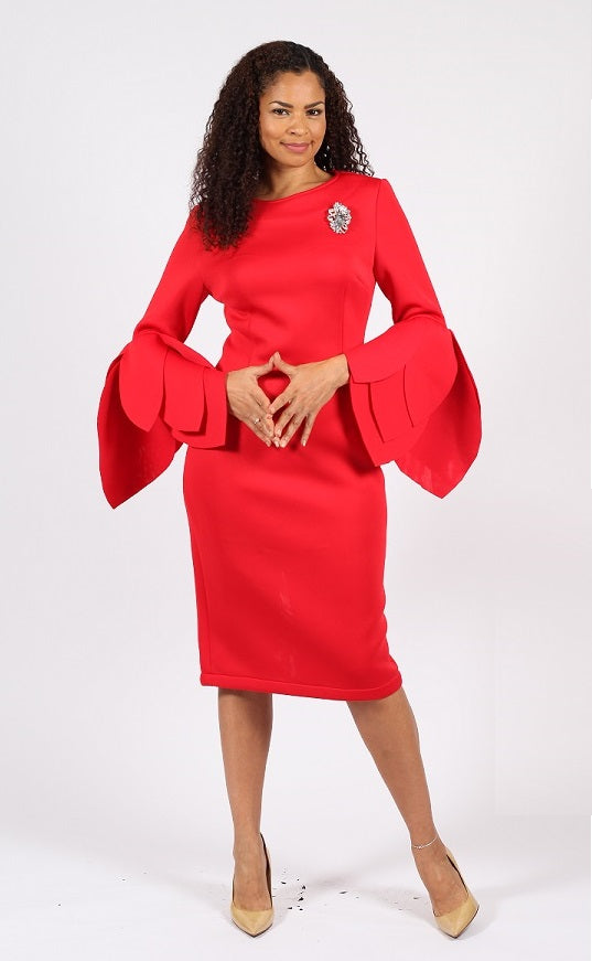 Diana 8668 1 piece Petal Sleeve Scuba Dress Colors: Black, Red, White Sizes: 8, 10, 12, 14, 16, 18, 20, 22, 24