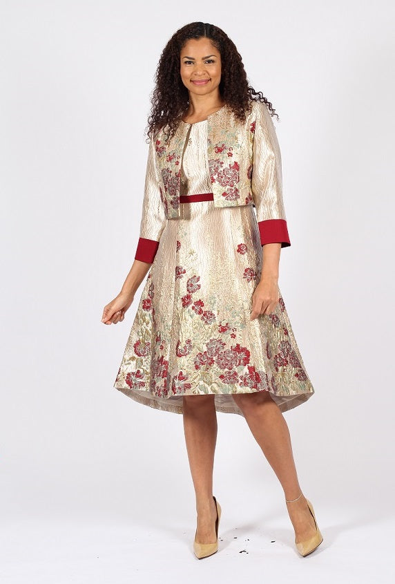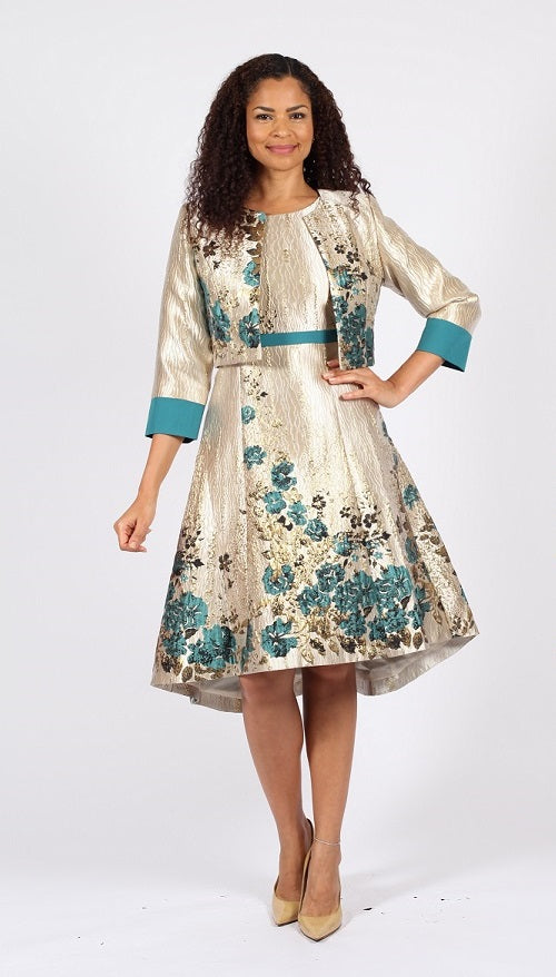Diana 8753 2 piece Brocade Jacket Dress Colors: Red, Teal Sizes: 8, 10, 12, 14, 16, 18, 20, 22, 24