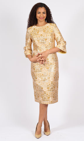 Diana 8827 1 piece Brocade Dress Colors: Gold Sizes: 8, 10, 12, 14, 16, 18, 20, 22, 24