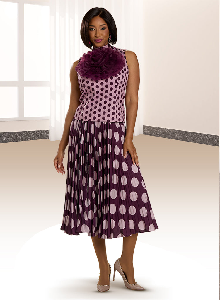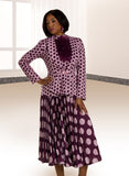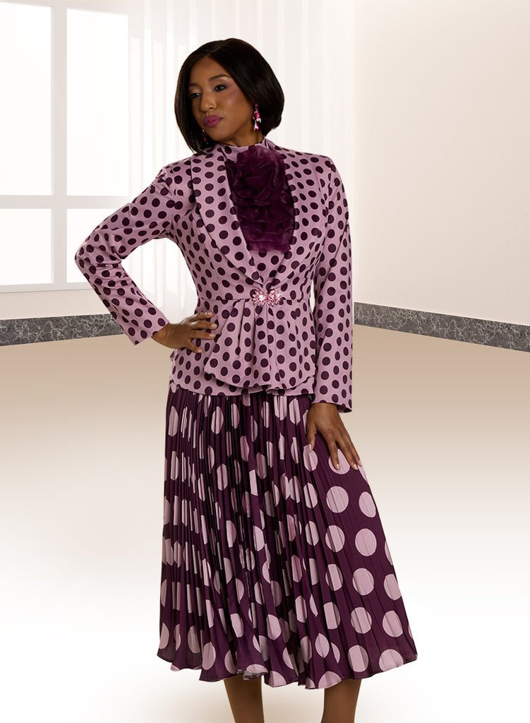 Donna Vinci 12148 3 piece Polka Dot Skirt Suit Colors: Orchid/Plum, White/Black Jacket Length: 25" Skirt Length: 30" Sizes: 6, 8, 10, 12, 14, 16, 18, 20