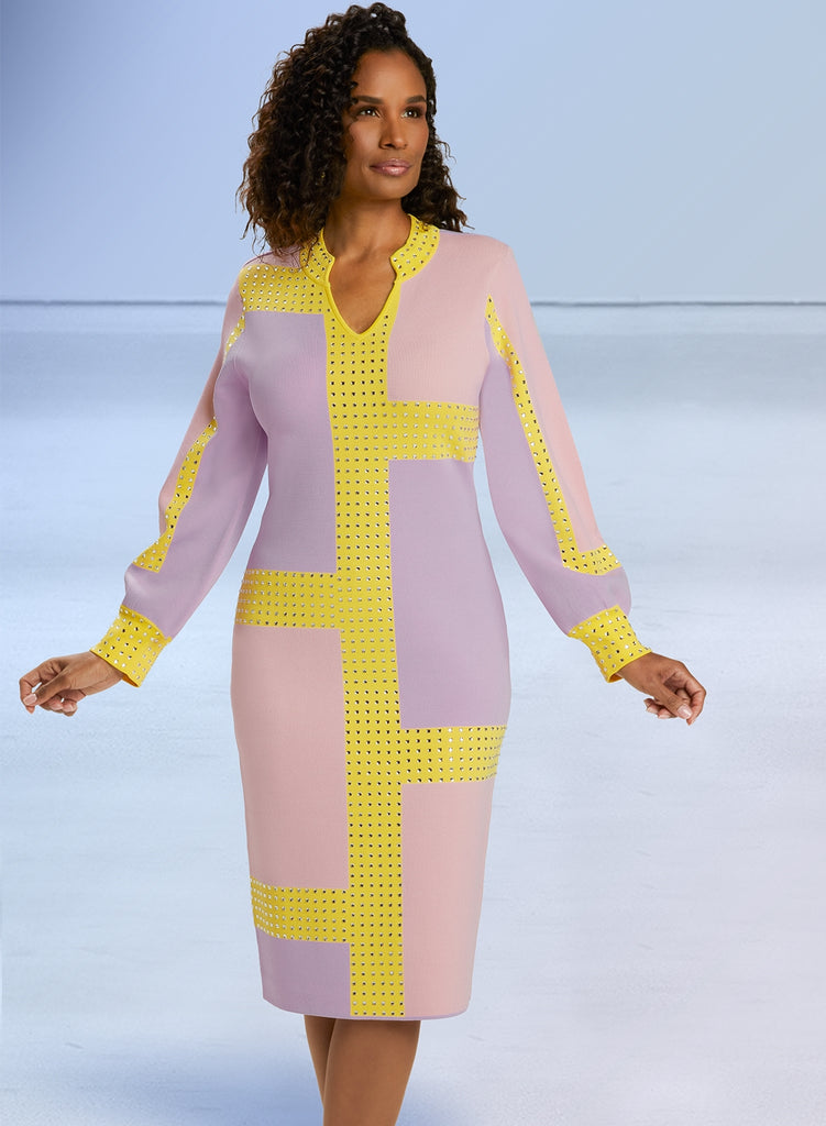 Donna Vinci Knit 13369 1 piece Knit Dress Color: Multi Dress Length: 43" Size: 8, 10, 12, 14, 16, 18, 20, 22