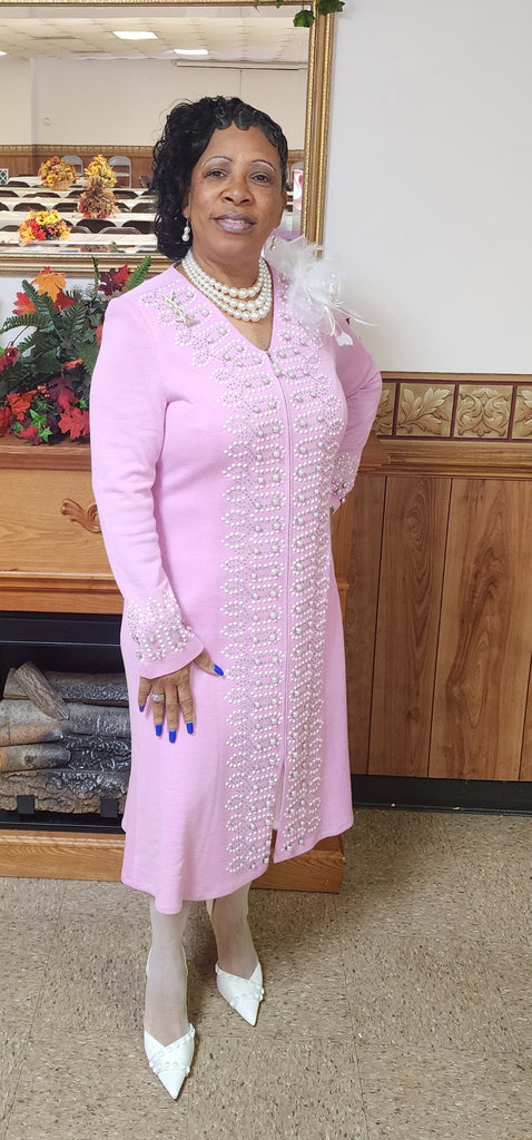 Donna Vinci Knit 13397 1 piece Knit Dress Color: Pink Dress Length: 43" Size: 8, 10, 12, 14, 16, 18, 20