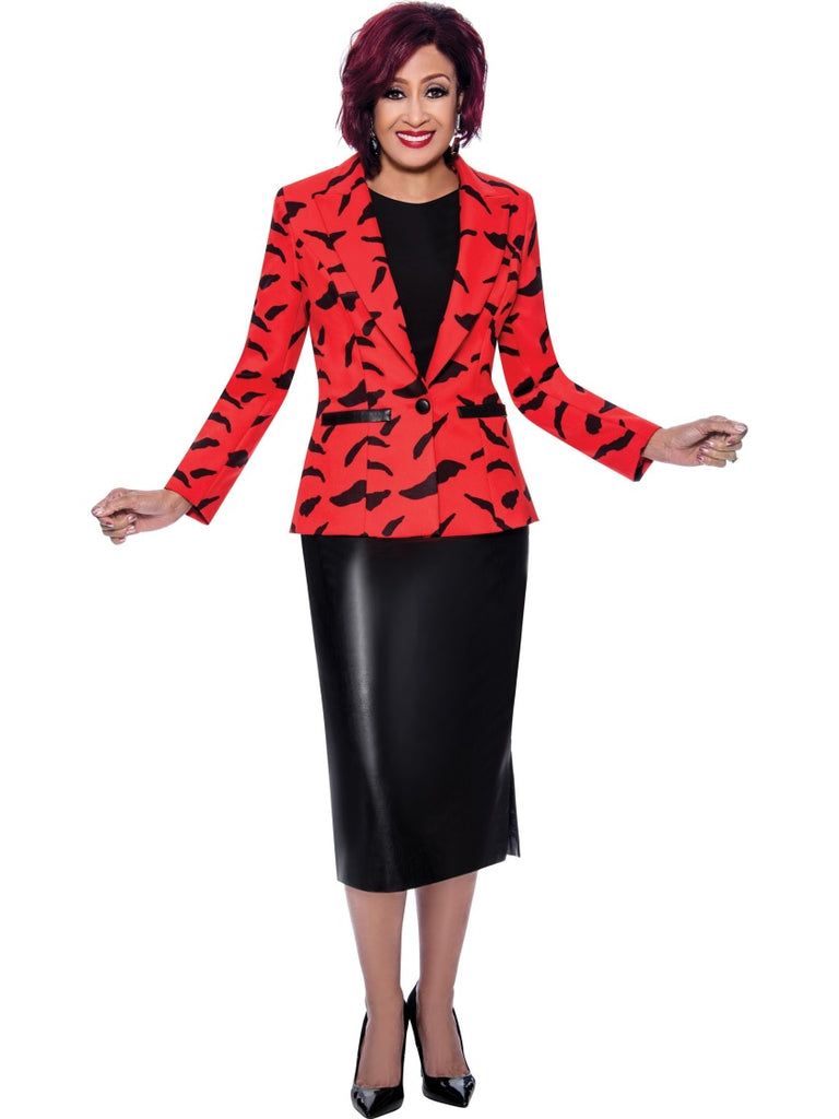 Dorinda 3903 2 pc Leather Skirt Suit Colors: Red/Black Sizes: 8, 10, 12, 14, 16, 16W, 18, 18W, 20W, 22W, 24W, 26W