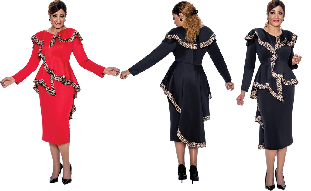 2 pc Leopard Trim Skirt Suit