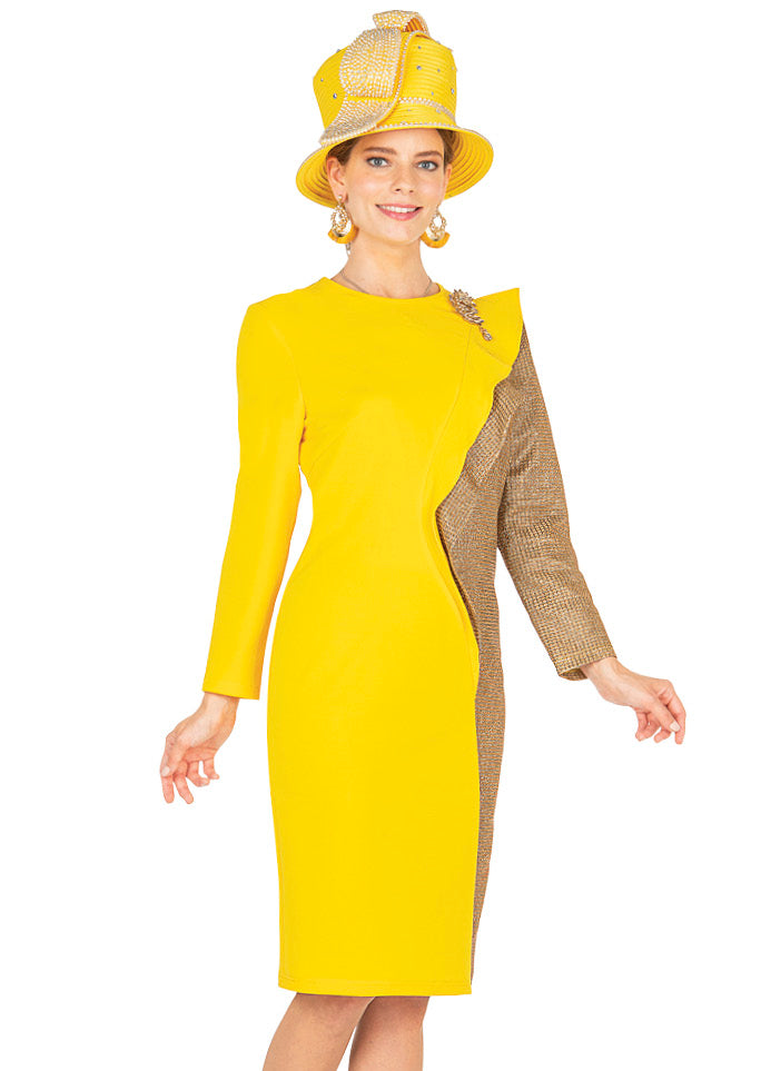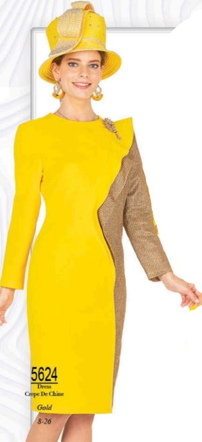 Champagne 5624 1 piece Dress Colors: Gold Sizes: 8, 10, 12, 14, 16, 18, 20, 22, 24, 26 MATCHING HAT AVAILABLE