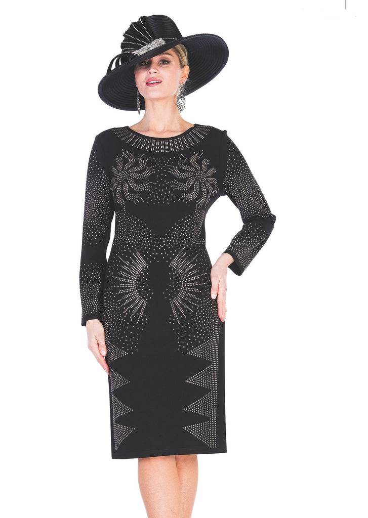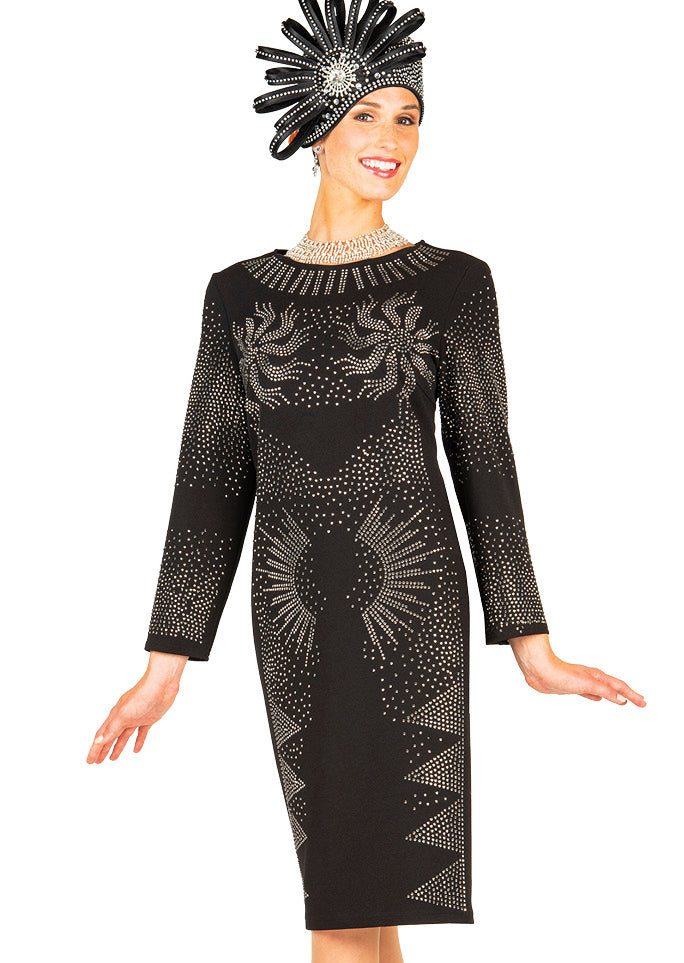 Champagne 5626 1 piece Dress Colors: Black Sizes: 8, 10, 12, 14, 16, 18, 20, 22, 24, 26 MATCHING HAT AVAILABLE