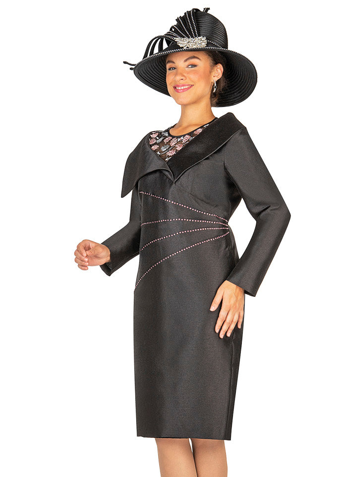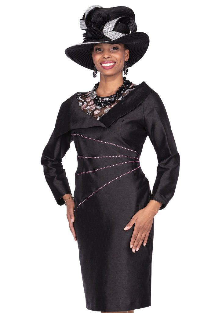 Champagne 5636 1 piece Dress Colors: Black Sizes: 8, 10, 12, 14, 16, 18, 20, 22, 24, 26 MATCHING HAT AVAILABLE