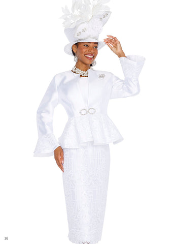 Elite Champagne 5829 white bell sleeve brocade skirt suit