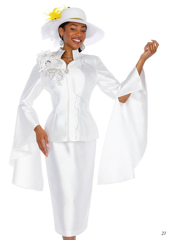 Elite Champagne 5866  bell sleeve white skirt suit