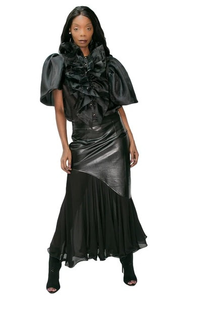 Faux Leather Tulle Skirt