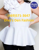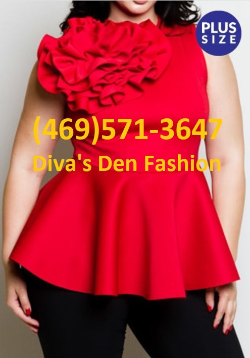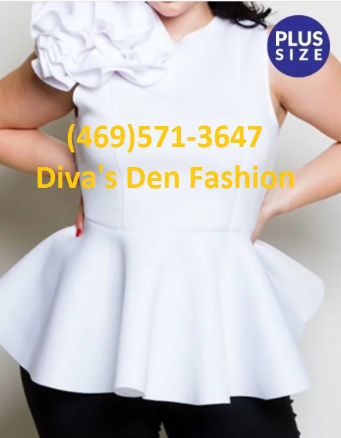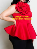 Flower Top Color: Black, Fuchsia, Olive, Red, Royal, White Size: 1X (14/16), 2X (18/20), 3X (22/24)