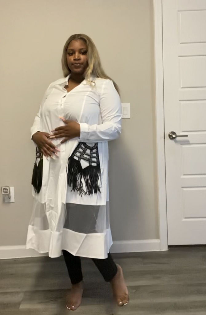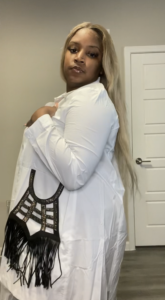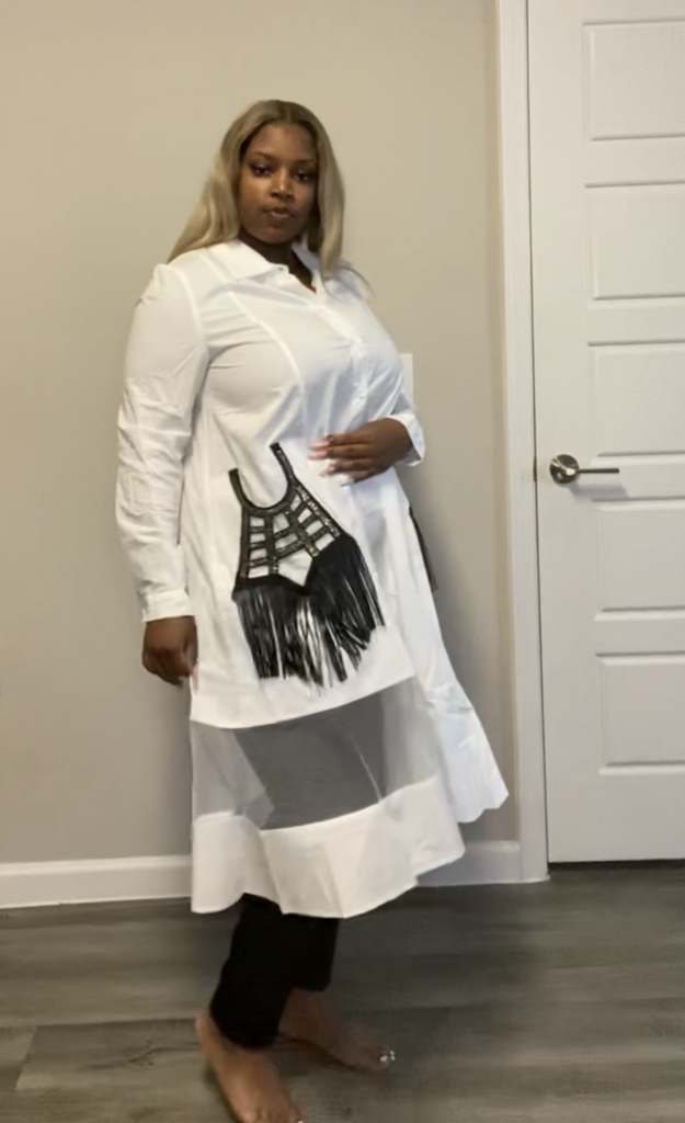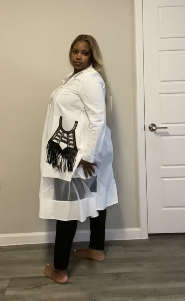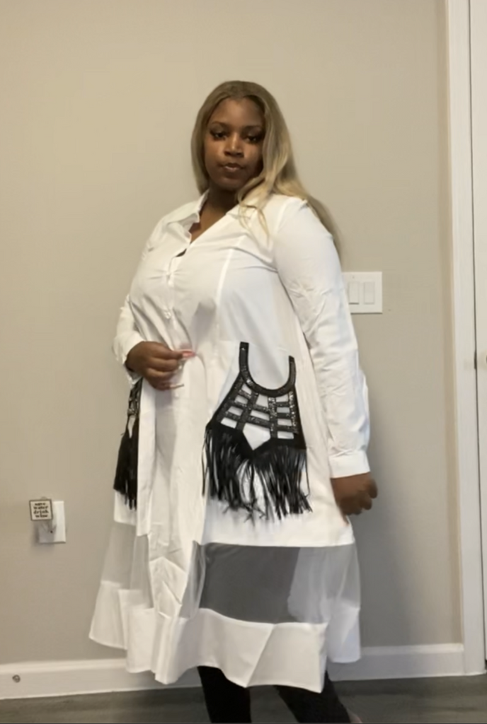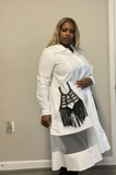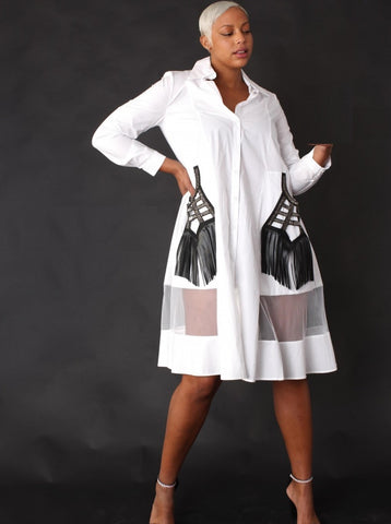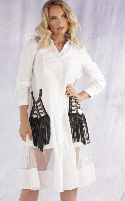 For Her NYC 81587 1 piece Suede Fringe Pocket Shirt Dress Colors: White Sizes: S, M, L, XL, 1X, 2X