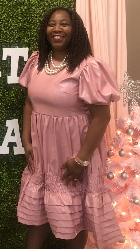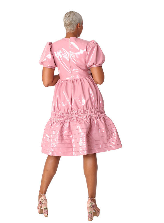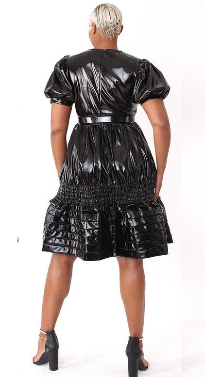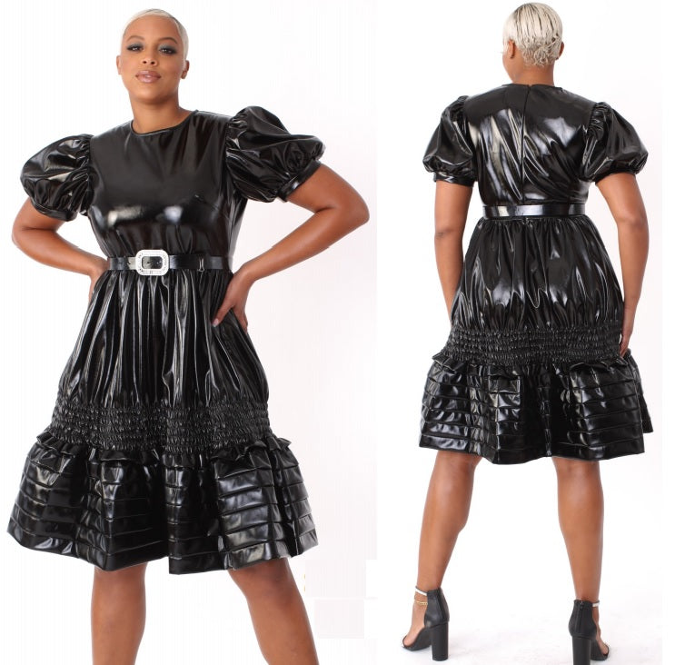 For Her NYC 81820 1 piece Faux Leather Dress Color: Black, Pink Sizes: S, M, L, XL, 1X, 2X