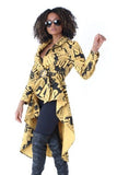 For Her NYC 81844 1 piece Print High Low Jacket Color: Red/Black, Yellow/Black Sizes: S, M, L, XL, 1X, 2X