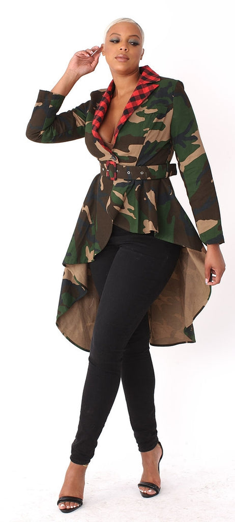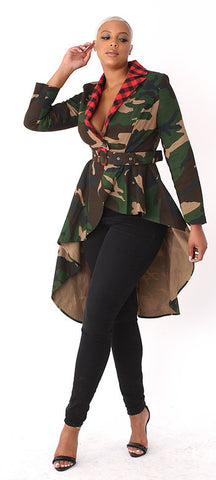 For Her NYC 81851 1 piece Camouflage High Low Jacket Colors: Camouflage Sizes: S, M, L, XL, 1X, 2X
