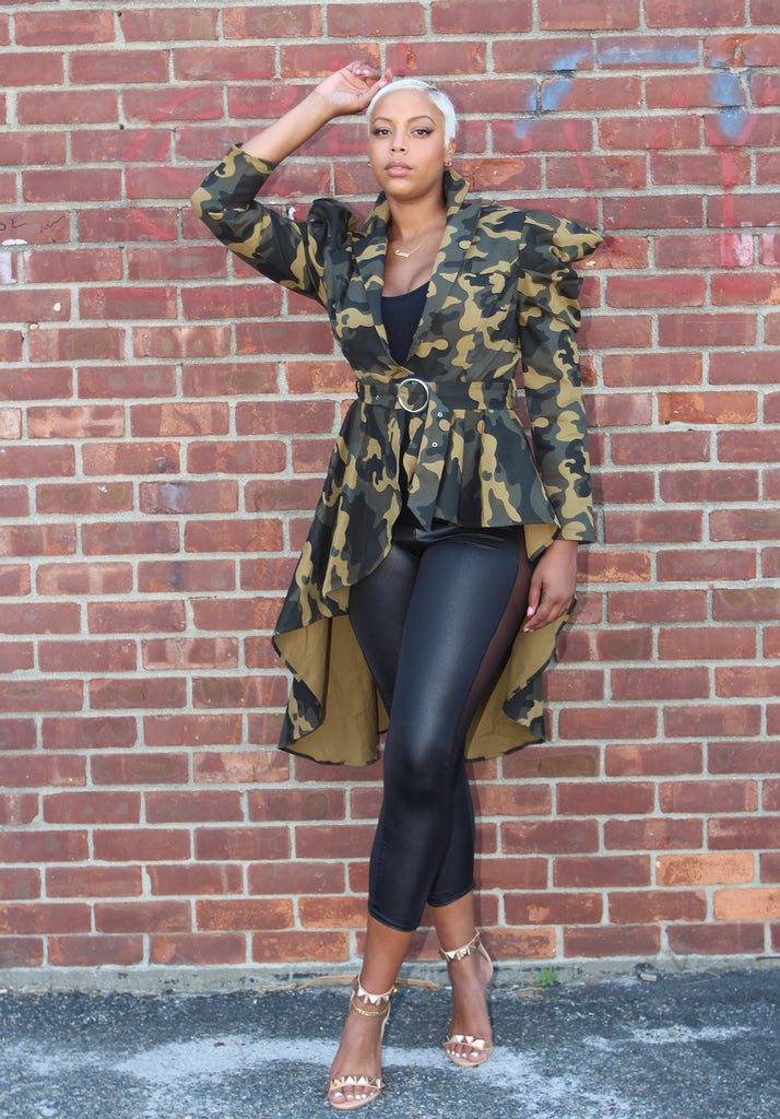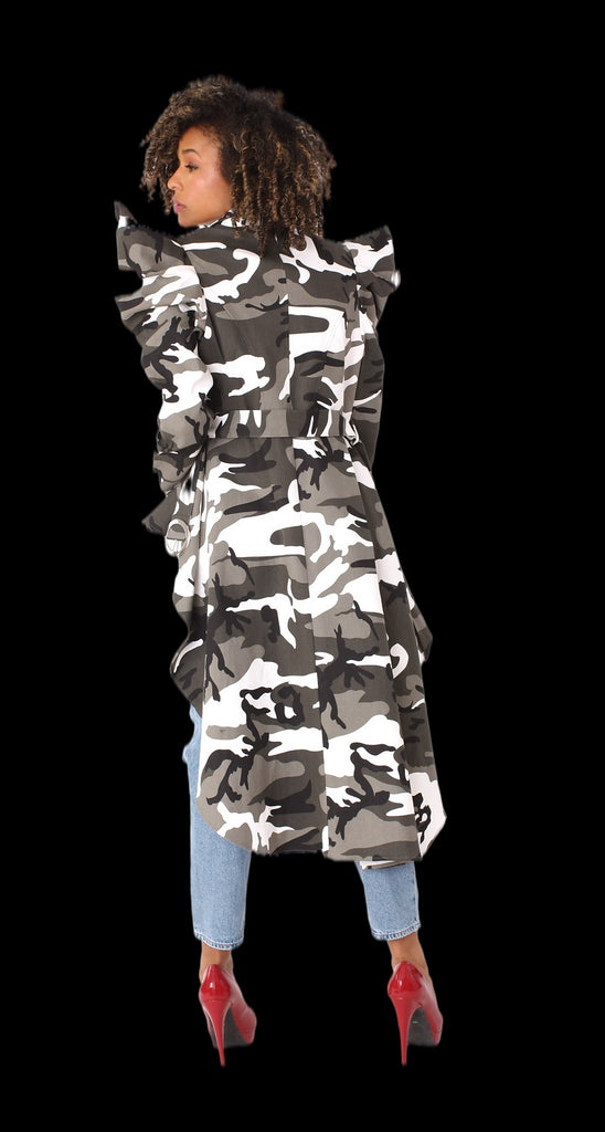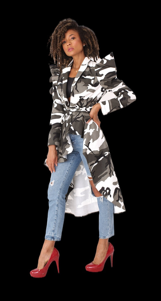 For Her NYC 81896 1 piece High Low Jacket Color: Gray Camouflage, Green Camouflage Sizes: S, M, L, XL, 1X, 2X