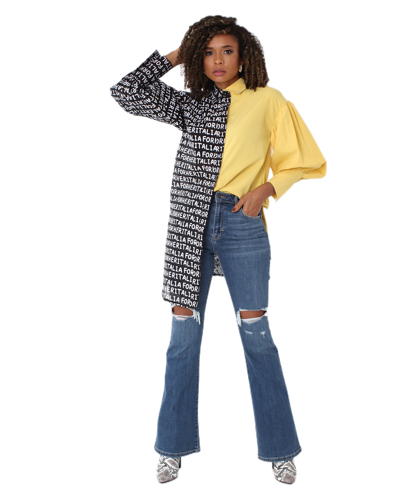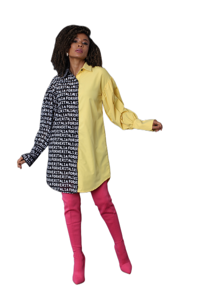 For Her NYC 81988 1 piece Color Block Tunic Colors: Red/Multi, Yellow/Multi Sizes: S, M, L, XL, 1X, 2X