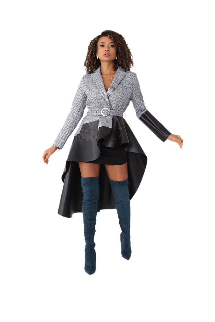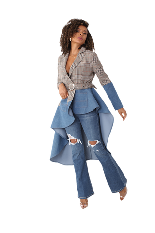 For Her NYC 82018 1 piece High Low Jacket Color: Brown Plaid, Grey Plaid Sizes: S, M, L, XL, 1X, 2X