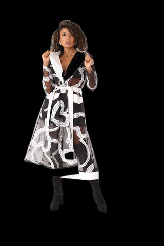 For Her NYC 82020 1 piece Sheer Jacket Colors: Black/White Sizes: S, M, L, XL, 1X, 2X