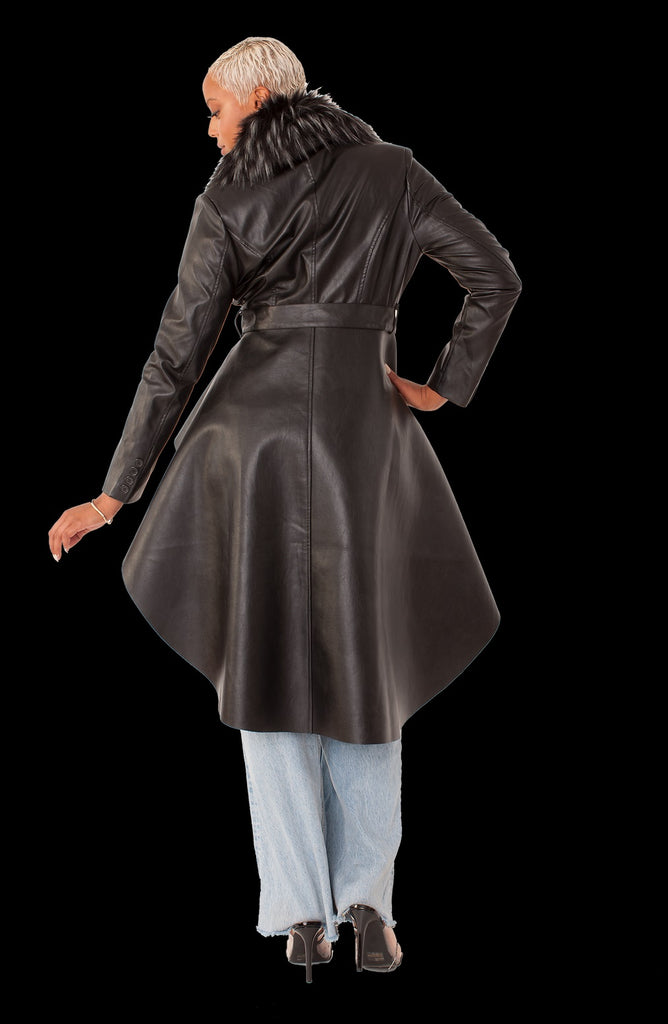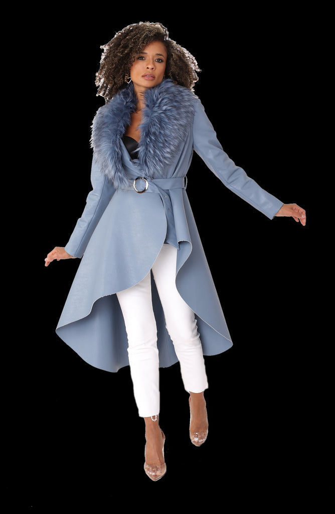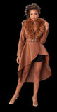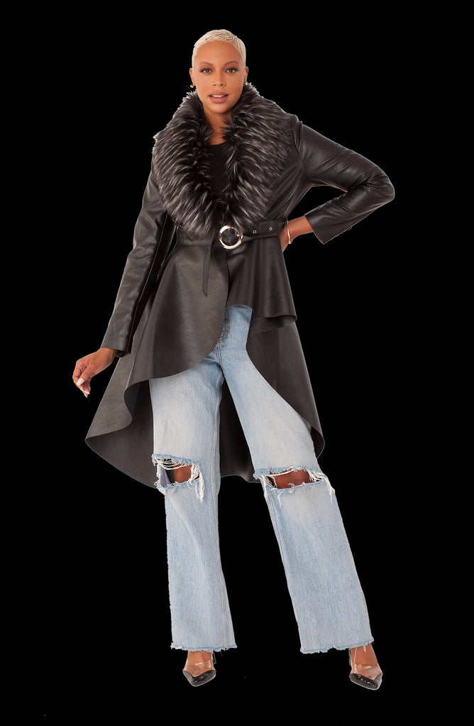 For Her NYC 82054 1 piece High Low Jacket with Fur Collar Color: Black, Blue, Brown Sizes: S, M, L, XL, 1X, 2X