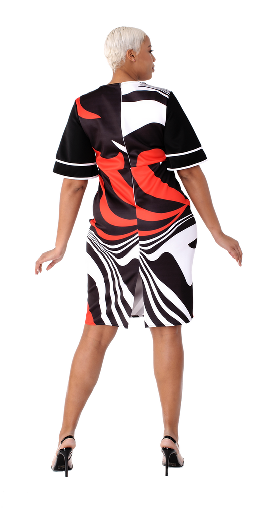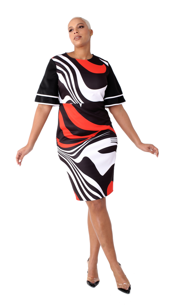 For Her NYC 82060 1 piece Scuba Midi Dress Colors: Red/Black/White Sizes: S, M, L, XL, 1X, 2X