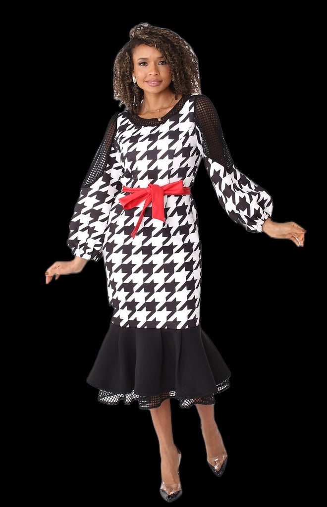 For Her NYC 82081 1 piece Houndstooth Scuba Dress Colors: Black/White Sizes: S, M, L, XL, 1X, 2X