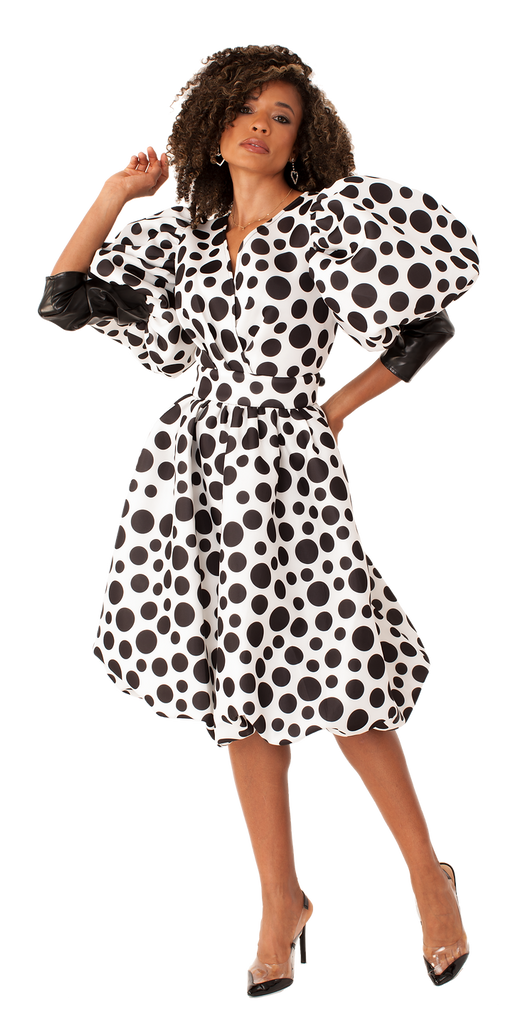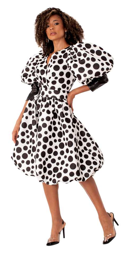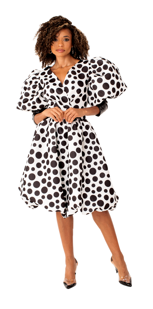 For Her NYC 82150 1 piece Puff Sleeve Scuba Dress Colors: White/Black Sizes: S, M, L, XL, 1X, 2X