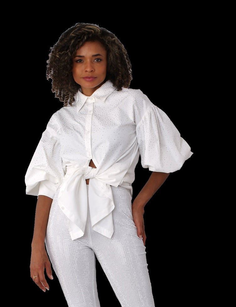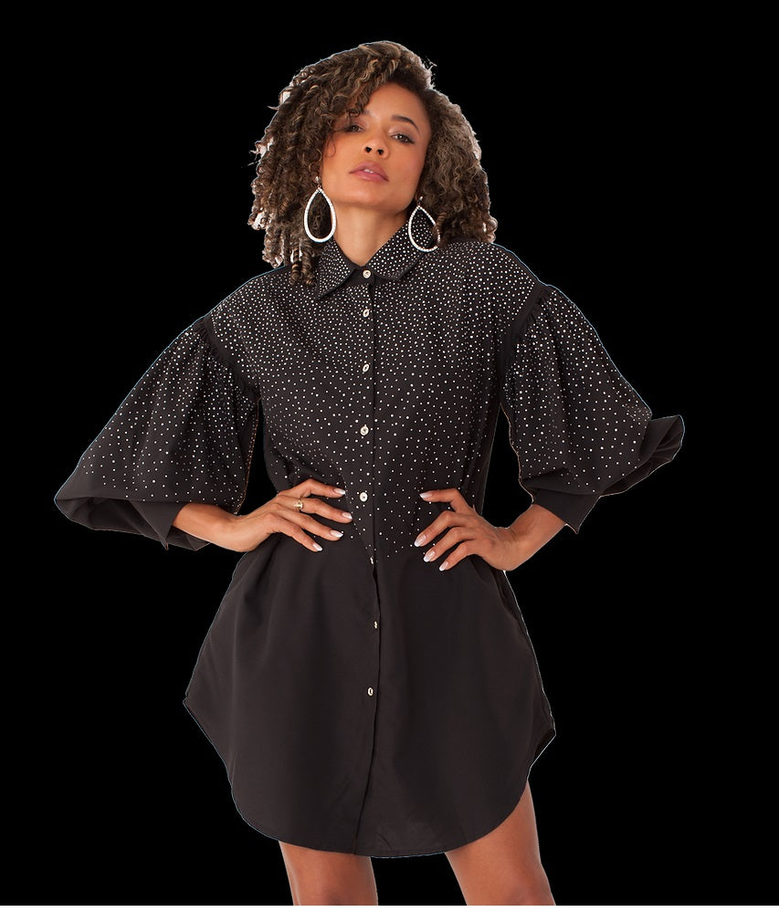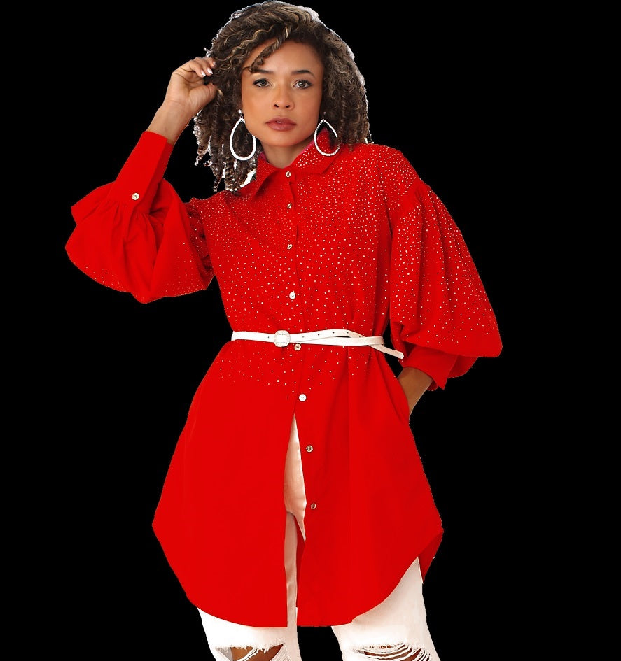 For Her NYC 82214 1 piece Rhinestone Embellished Top Colors: Black, Pink, Red, White Sizes: S, M, L, XL, 1X, 2X