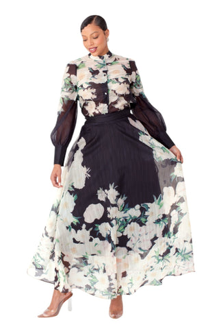 For Her NYC 82804 2 piece Floral Maxi Skirt Set Colors: Black Multi Sizes: S, M, L, XL, 1X, 2X