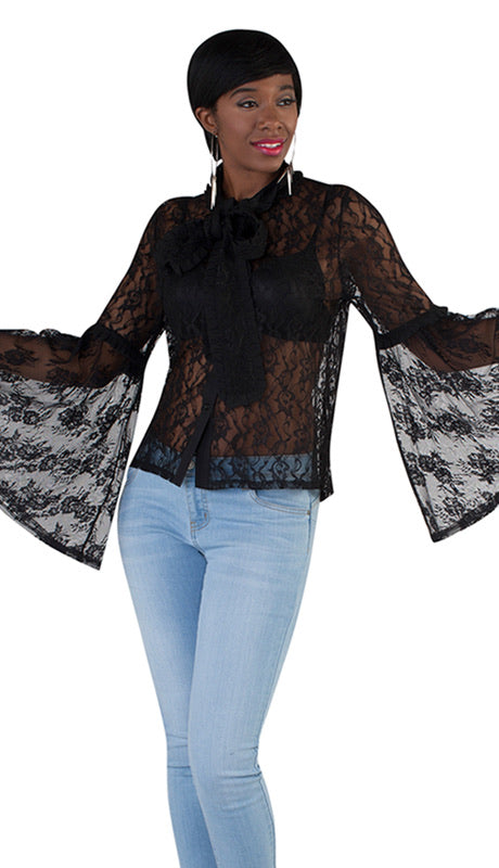 Sheer Lace Bell Sleeve Top