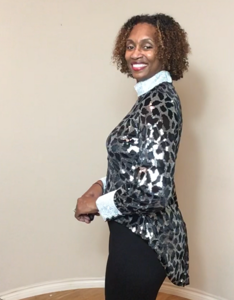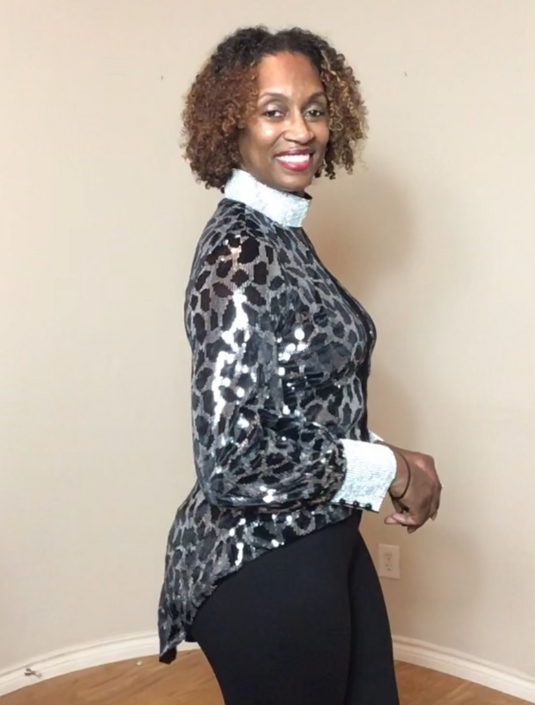 For Her NYC 8778 1 piece Sequin Top Color: Black/Silver Size: S, M, L, XL, 1X, 2X
