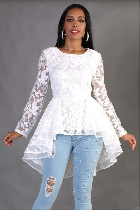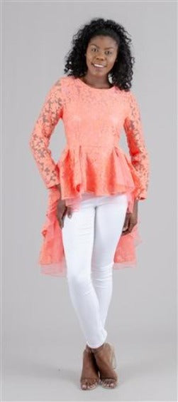 For Her NYC 8784 1 piece Lace Top Colors: Ivory, Salmon Sizes: S, M, L, XL, 1X, 2X