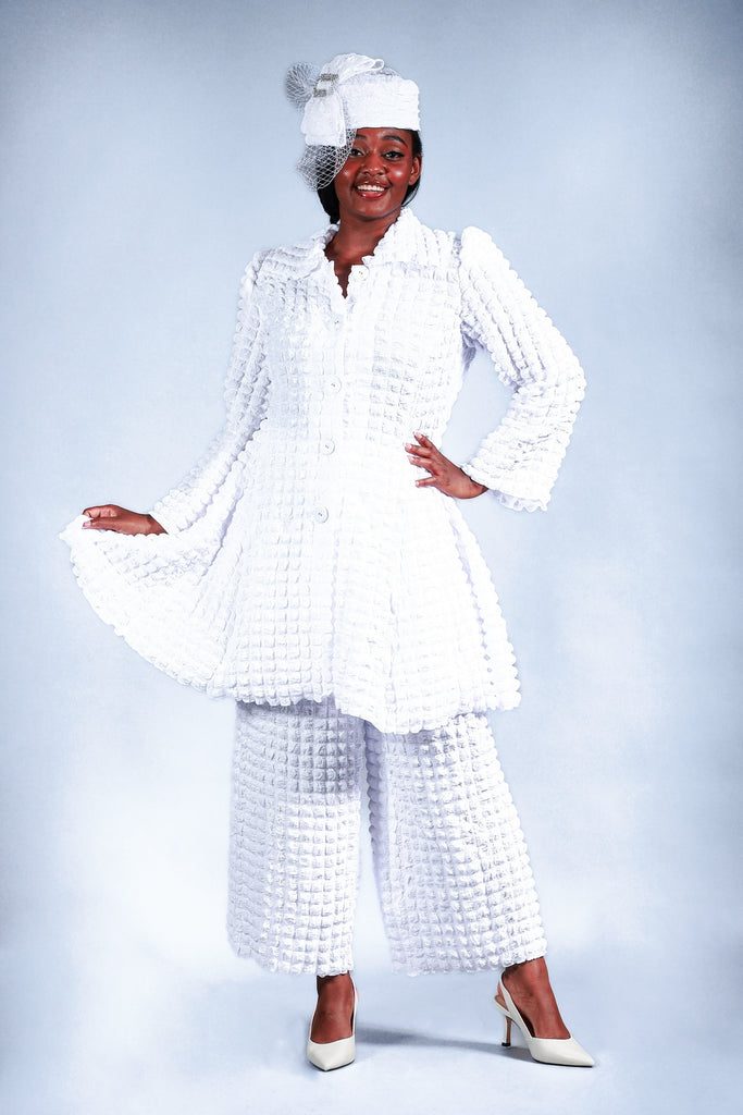 Giovanna 0950 3 piece Popcorn Pant Suit Colors: White Sizes: S, M, L, XL, 1X, 2X, 3X, 4X