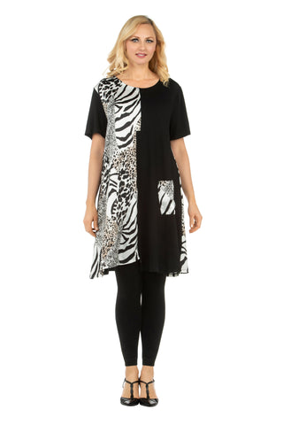 Giovanna D1612 1 piece Animal Print Dress Colors: Black Multi Sizes: S, M, L, XL, 1X, 2X