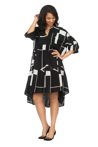 Giovanna D1613 1 piece Geometric Print Dress Colors: Black Sizes: S, M, L, XL, 1X, 2X