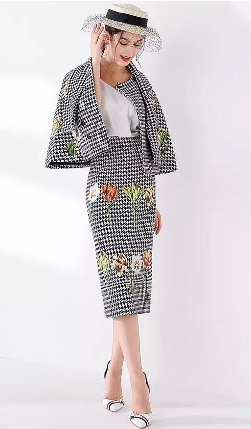 Houndstooth Skirt Set