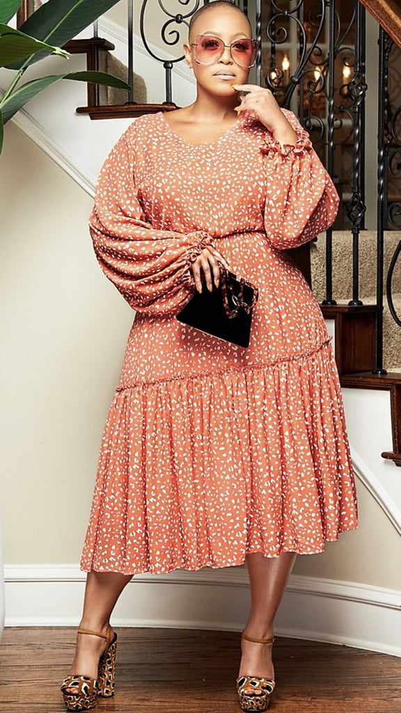 Lantern Sleeve Midi Dress