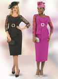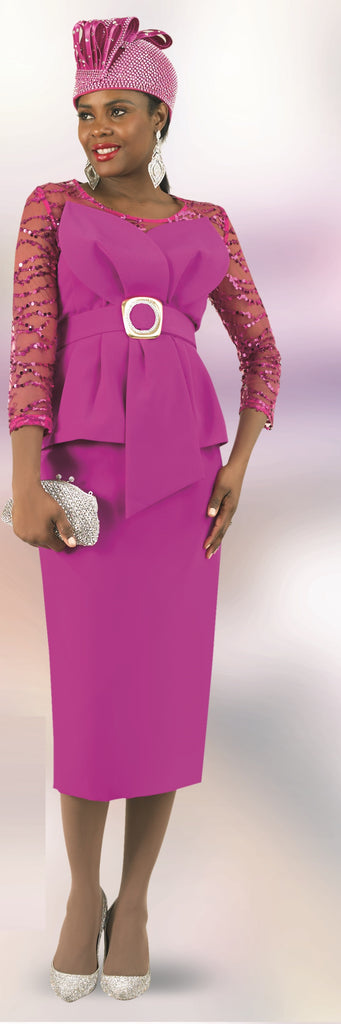 Lily & Taylor 4959 fuchsia pink satin skirt suit