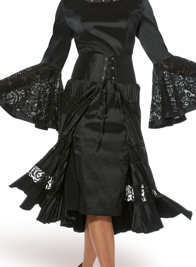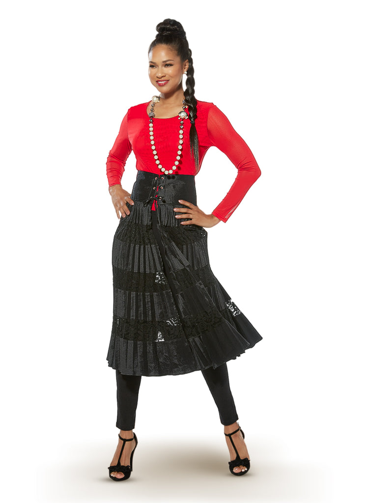 Love the Queen 17328 1 piece Pleated Lace Skirt Colors: Black Skirt Length 29" Sizes: S, M, L, XL, 1X, 2X