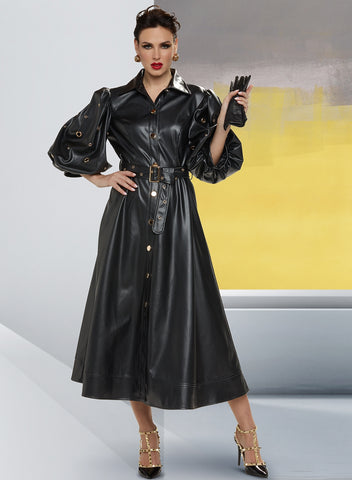 Love the Queen 17399 1 piece Faux Leather Coat Dress Colors: Black Length 52" Sizes: S, M, L, XL, 1X, 2X