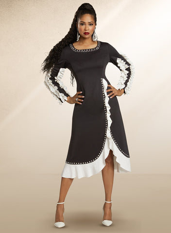 Love the Queen 17434 1 piece Stretchable Dress Colors: Black/White Length 48" Sizes: S, M, L, XL, 1X, 2X