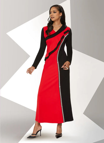 Love the Queen 17486 1 piece Stretchable Dress Colors: Red/Black Length 56" Sizes: S, M, L, XL, 1X, 2X