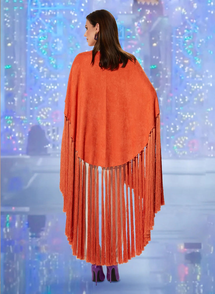 Love the Queen 17492 1 piece Fringe Faux Suede Cape Colors: Orange Length 29" Sizes: S, M, L, XL, 1X, 2X