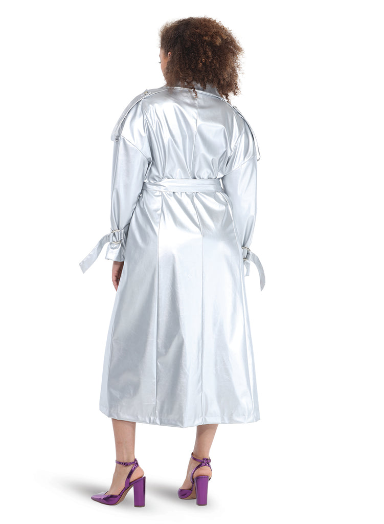 Love the Queen 17578 1 piece Faux Leather Coat Colors: Silver Length 49" Sizes: S, M, L, XL, 1X, 2X