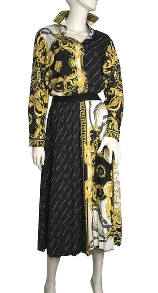 Pleated Print Maxi Skirt Suit