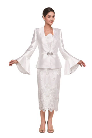 Serafina 4302 3 piece Silky Twill Skirt Suit Colors: Off White Sizes: 10, 12, 14, 16, 18, 20, 22, 24