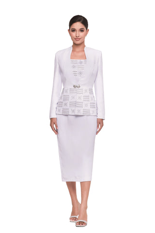 Serafina 4303 3 piece Crepe Skirt Suit Colors: White Sizes: 10, 12, 14, 16, 18, 20, 22, 24