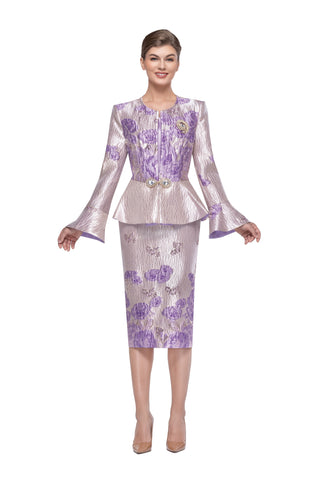 Serafina 4318 3 piece Jacquard Skirt Suit Colors: Lavender, Pink Sizes: 8, 10, 12, 14, 16, 18, 20, 22, 24