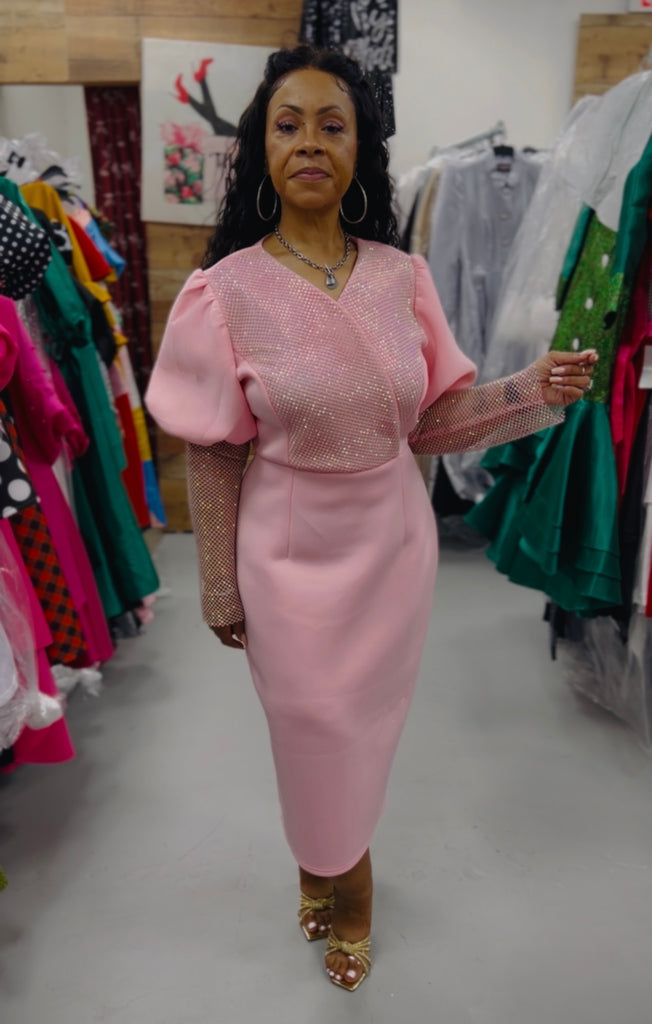 Serafina 6454 1 piece Puff Sleeve Scuba Dress Colors: Black, Pink, Turquoise Sizes: M, L, XL, 1X, 2X, 3X