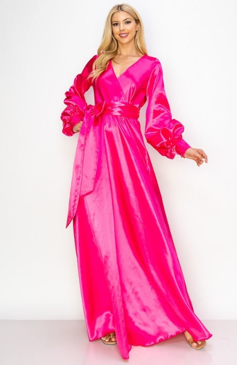Solid Puff Sleeve Maxi Dress 1 piece Maxi Dress Colors: Fuchsia Sizes: S (4/6), M (8/10), L (12/14)